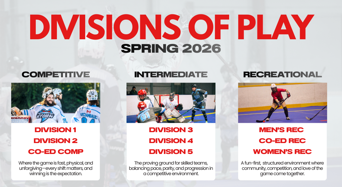 Spring season details, including prizing and additional league announcements, are currently being finalized. As we continue planning for the year ahead, our focus is on building a stronger, more engaging league experience across all divisions, programs, and events. We have a number of initiatives and enhancements in the works, the result of months of careful planning and deliberation, and are excited about what’s ahead as we look to make 2026 a great year for ball hockey in Niagara!